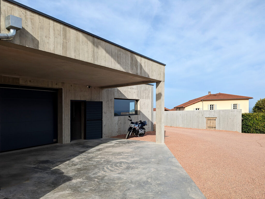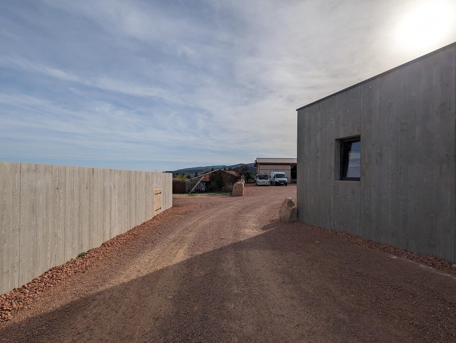 Le volume de stockage est prévu en ossature bois, celui des pièces de vie sera construit en béton matricé isolé en âme afin d’offrir un revêtement pérenne et de qualité sur les faces des locaux intérieurs mais aussi des façades.